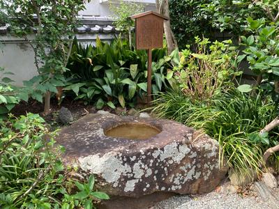 ☝看景寺(本町3丁目)には、飛鳥時代に創建された金寺山廃寺の塔の礎石(建物の柱を受ける土台石)があります。看景寺はかつて、境内で幼稚園が開設されていたとか(新免会『新免村をもっと理解するために』(2015年)より。時期については記載なし)。