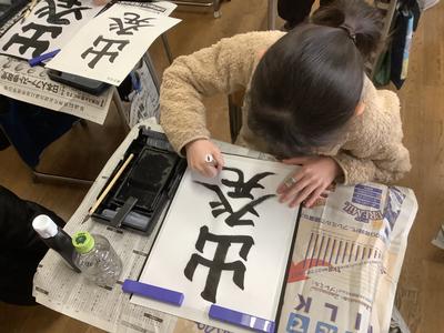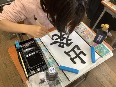 3学期が始まり「新しい年のスタート」を切りました。早速、4年生は「書き初め」に挑戦していました。