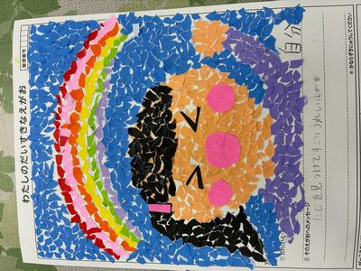 テーマは、「あなたの大好きな笑顔」。周りにある笑顔の中から自分の大好きな笑顔が描かれています。