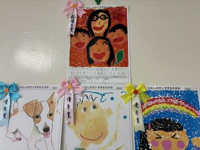 第1部は、笑顔絵コンテストの表彰式でした。入選した児童は、めちゃくちゃ喜んでいました! 残念ながら、今回入選しなかった児童のみなさんの作品も、見ているだけで心が温かくなる作品ばかりです。笑顔絵コンテスト応募作品(大池小学校分)は、後日、校舎の中に展示します。参観授業の際に、ぜひご覧ください!