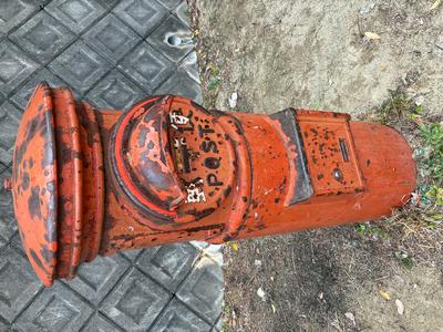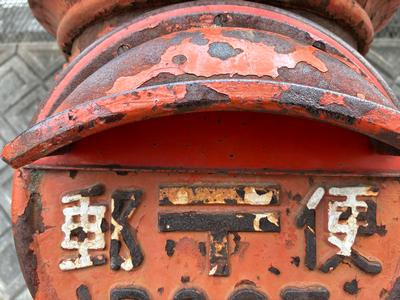 地域にお住いの元本町郵便局長さんに伺ったところ、わからないとのことでした。かなり古いポストなのかもしれません。
