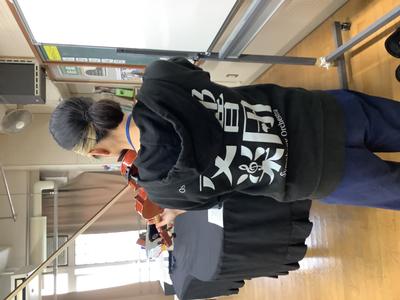 スクールサポーターさんは、大阪大学2年生。大阪大学交響楽団に所属され活動されています。本日は、部活のパーカーで演奏していただきました。