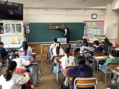 3年生は、ゲストティーチャーをお迎えして算数の時間に「そろばん」の学習を行いました。ゲストティーチャーは、日本珠算連盟に所属している西川そろばん塾(本町3丁目)の先生です。