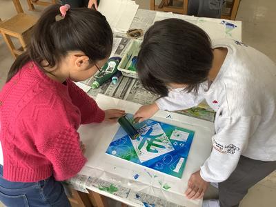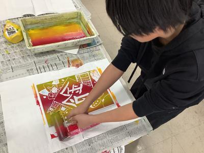 カラー版画~わたしの好きな漢字~に挑戦(5年)