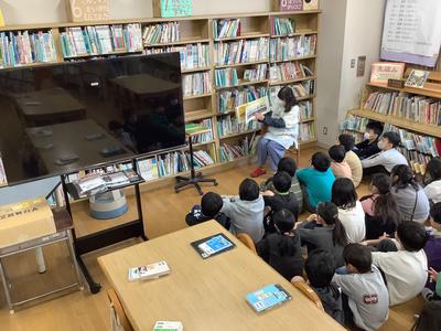 図書館は、児童の「読書センター」の機能がありますが、大型モニターを設置することによって、「学習・情報センター」(メディアセンター)としての機能も持たせて幅広く活用できるスペースにしていきたいです。学校司書による読み聞かせのスタイルも変わるかもしれません。