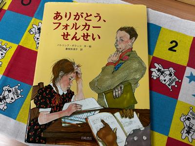校長もピンチヒッターで6年生の教室で読み聞かせを行いました。読んだ絵本は、パトリシア・ポラッコ 作・絵、香咲弥須子 訳『ありがとう、フォルカーせんせい』(岩崎書店、2001年)。作者の自伝的なお話です。少し長いお話でしたが、みんなしっかりと向き合ってくれました。またいつか、手に取ってじっくりと読んでみてほしい絵本です。