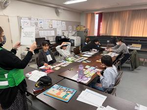 2月20日(土)、今年度最後の活動がありました。今回は、水が不要なトイレの凝固剤体験、ナマズの学校ゲーム(防災教育カードゲーム)、学校の中にある消火栓の確認などを行いました。