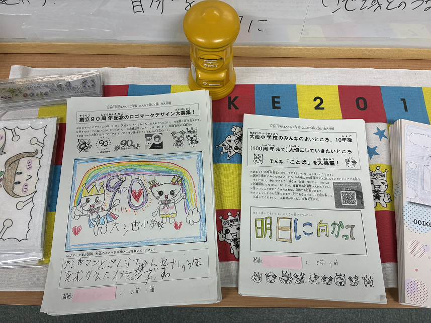 創立90周年記念事業の一環として「ロゴマークデザイン」と「大池小学校のよいところ・100周年まで大切にしていきたいところ(ことば)」の募集を行っています(児童対象)。