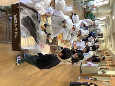 1年生は、真っ白な新しいエプロンに身を包み、配膳をがんばっていました!