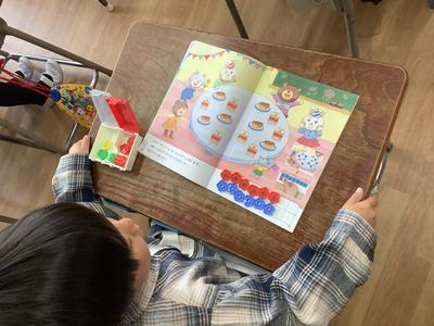 1年生の教室では算数を学習していました。教科書におはじきを並べて、数について考えていました。1年生のみんな、がんばっていますね!