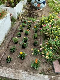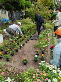 キバナコスモスやナデシコを植えました。当番の皆さんが丁寧に植えて綺麗に仕上がっています。