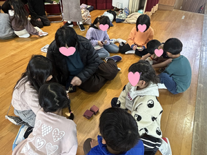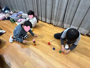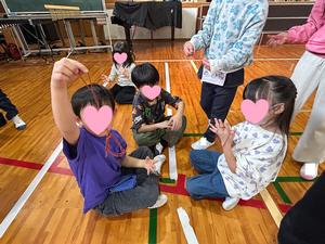 地域の方々にやさしく教えていただきながら、技が決まると、 「あ!できた!」「見て見て!」と嬉しそうな声があちこちから聞こえ、 とてもあたたかい雰囲気に包まれていました。 普段のゲームとはちがう、昔ながらの遊びに触れることで、 道具の使い方や遊びの工夫など、新しい発見もたくさんあったようです。