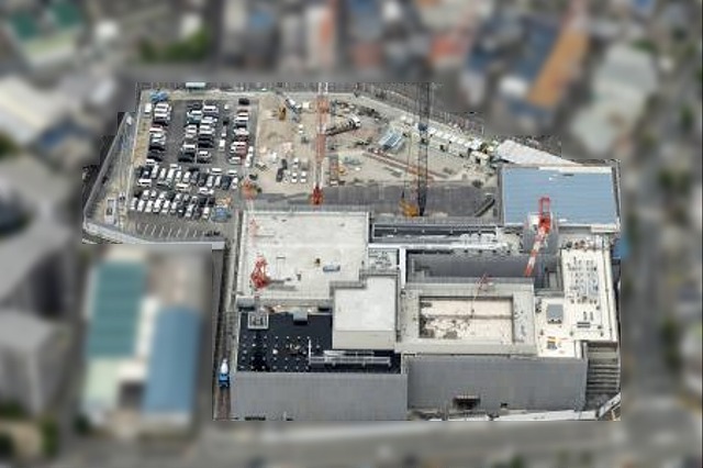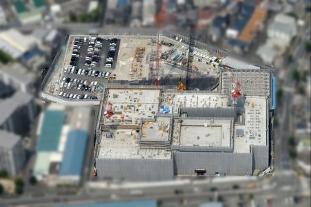 現場では、たくさんの大きなクレーン車が並び、1階部分の鉄骨等を組み立てている状況が見てとれました。