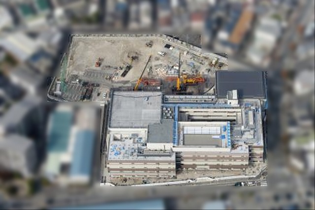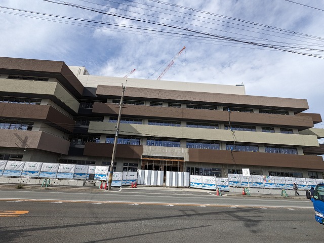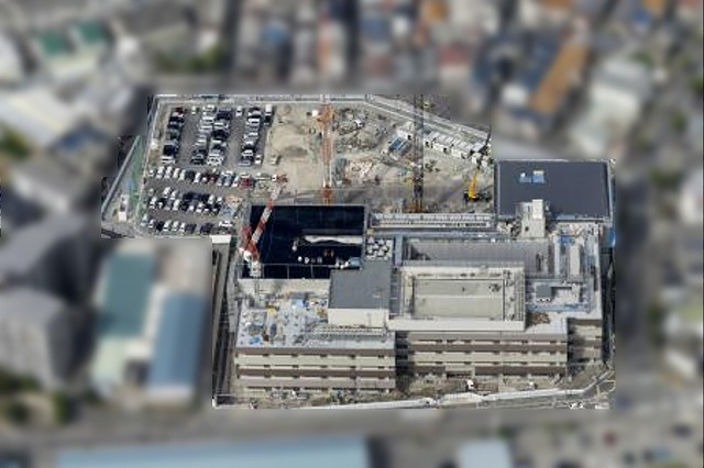 現場では、たくさんの大きなクレーン車が並び、1階部分の鉄骨等を組み立てている状況が見てとれました。