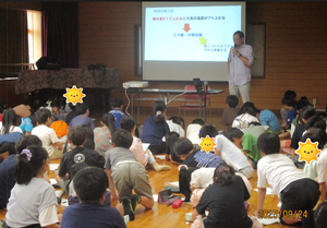 4年生は、社会科の学習で、防災について学んでいます。今日は、地球温暖化防止全国ネットの高田研先生に来ていただきお話を聞きました。台風の強度が増したり、進路や速度が変化していたり、降水量が増えたり等地球温暖化が台風に与える影響などを教わったり、気候変動と災害の関係から、私たちにできることについて考えたりしました。