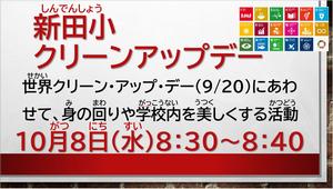 今日は新田小クリーンアップデーでした。国連が定めた「世界クリーンアップデー」は9月20日。世界各地で一斉に清掃活動が行われます。それに合わせて、本校でも、身の回りや校内を美しくする活動を全校一斉に行いました。