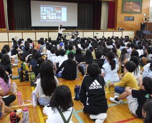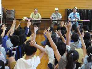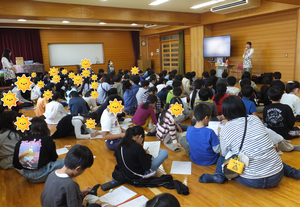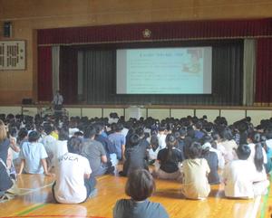 と話がありました。そのあとは、各学年が学習している内容に関係するクイズをしました。