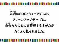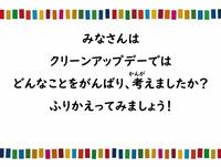 先週のクリーンアップデイで、皆さんは身の回りをきれいにできましたか。今地球はポイ捨てなどで汚くなってきています。身の回りをきれいにして、地球をきれいにしていきましょう。 |