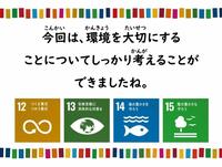 お話を聞いた後、自分たちにできることを各班で話し合ったところ、「給食を残さず食べる」「嫌いなものでも一口食べてみる」「SDGsの目標『飢餓をゼロに』に取り組んでいく」などの感想が聞かれました。