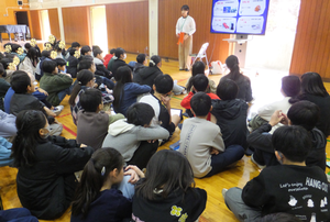 3・4時間目に、5・6年生を対象としたESD学習講演会を行いました。テーマは「様々な視点から、気候変動への対策を考えてみよう」。子どもたちは3つのグループに分かれ、それぞれに与えられた社会課題について解決策を考え、発表しました。