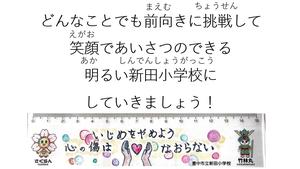 「新田小学校からいじめをなくして、どんなことでも前向きに挑戦して、笑顔であいさつのできる 明るい新田小学校にしていきましょう!」