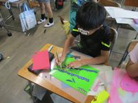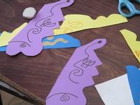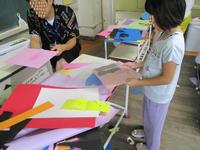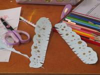 きれいな色の画用紙を切り抜いて羽の形にしたり、