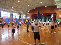 みんな真剣な面持ちで旗を振って練習をしていました。