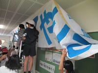 応援の練習をしたり、スローガンを職員室前廊下に掲示したりと、