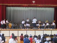 体育館に集まって、ブラスバンド部が
