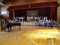 舞台の左右のひな壇に分かれて立って歌の練習をしました。