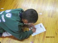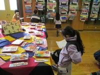 5年生のすきなものを針金で表現した作品に興味津々でした。