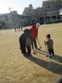 主に運動場で親子や地域の人たちとグランドゴルフを楽しみ、