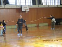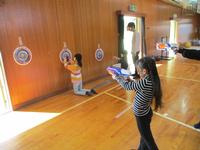 残りの半分の人は体育館で射的やバランスボール、大繩などで楽しみました。