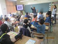 先生が「Turn right.」、「Go straight.」などの指示を聞いて、