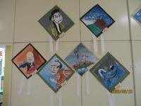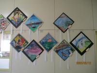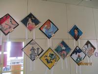 和凧にありそうな浮世絵の図柄を絵の具で描いていきました。