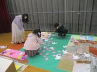 6年生が卒業制作で作っていた体育館舞台上の正面壁に掲示する