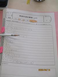 調査したものをしっかり書き出すと、家庭科室にはたくさんの道具や調味料が置いてあることがわかりました。