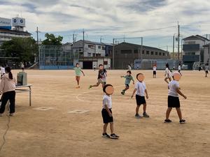 運動会に向けて、休み時間の運動場に元気な6年生の姿が見られます。子どもたちは、自主的に集まり、リレーの練習に取り組んでいます。