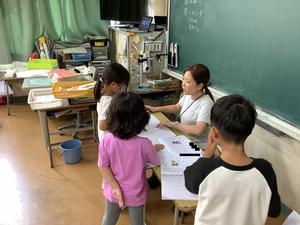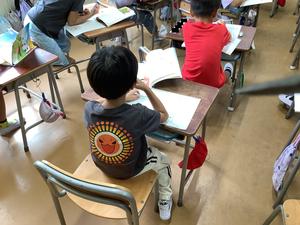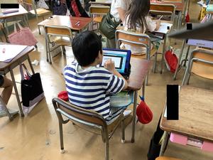 1組では、漢字の学習をしていました。入学して半年、ひらがなからスタートした子どもたちが、今では次々と新しい漢字を覚えています。担任の先生は、一人ひとりのノートを添削しながら、上手にかけた字と直した方がよい字を丁寧に伝えていました。早く書き終えた子どもたちは、タブレットを使って学習を進められるようになっており、それぞれのペースに応じて活動していました。
