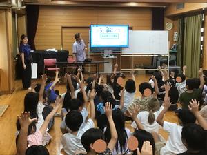 子どもたちは真剣な眼差しで聞きながら、共生社会の姿について考える時間を持つことができました。お礼として、子どもたちからは 手話を取り入れた歌「あおいそらにえをかこう」を贈りました。