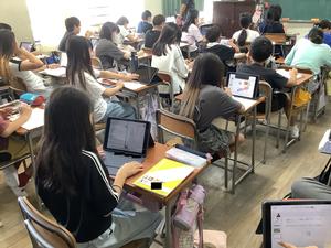 ICTの力を取り入れた学習を通して、6年生はこれからの時代に必要とされる「自ら考え、学びを深める力」を育んでいます。