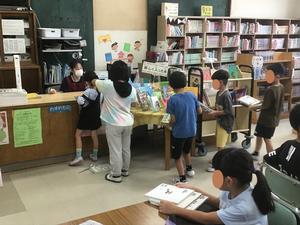 ②③その後は、前に借りていた本をカウンターに持っていき、手続きを済ませます。手続きが終わった本は自分で棚に戻し、次の活動へ。自分で本を管理する経験も学びの一つです。