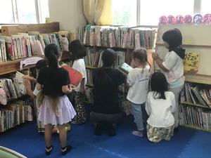 ④⑤続いての自由読書では、先生も一緒に本を手に取りながら、子どもたちと読書の楽しさを共有します。座って読めるくつろぎスペースでは、思い思いにお気に入りの本を開いたり、友だちにおすすめの本を紹介し合ったりする姿が見られました。図書室はリラックスした雰囲気に包まれていました。
