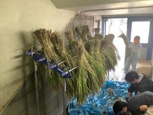 かり取った稲は現在「だてがけ」にして干しています。自分たちの手で植え、かりとった稲を目にし、子どもたちは大きな達成感を味わったことでしょう。秋の実りに感謝しながら、これからも体験を通じて学びを深めていってほしいと思います。