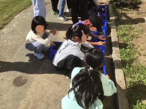 2年生の生活科では、「はつか大根」の栽培に取り組み始めました。子どもたちは自分の植木鉢を手に持ち、先生に手伝ってもらいながら土を入れ、ひとつひとつ大切に種を植えていきました。