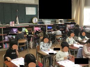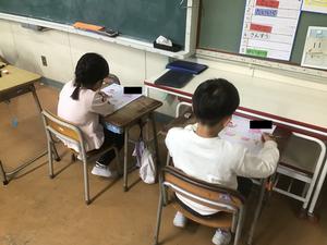 1年生の教室におじゃますると、ちょうど算数のテストの時間でした。教室の中はシーンと静まり返り、鉛筆の音だけが聞こえていました。どの子も真剣な表情で問題に向かい、一生けんめいに考えている様子から、集中して取り組む力が育っていることを感じました。