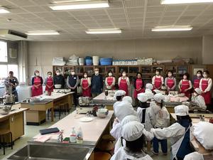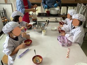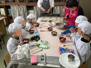 子どもたちは、地域の方々に教えていただきながら、白玉団子づくりに挑戦しました。丸めた団子をゆで上げ、サツマイモ餡きなこと一緒に美味しくいただきました。特に、サツマイモ餡は、学校で育てたものと、スーパーで購入したものの両方を作っていただき食べ比べました。家庭科室内には、子どもたちの「やってみたい!」「もっと食べたい!」といった声が響き渡り、笑顔がはじけていました。
