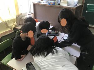 今回の外国語の学習では、教室とAET(外国語指導助手)の先生を Zoom でつなぎ、オンラインで会話する活動を行いました。画面の向こうには、子どもたちの呼びかけに笑顔で応えてくださるネイティブスピーカーの先生がいて、グループ内で交代しながら話します。子どもたちは、これまで授業で学習してきた “What would you like?” などの表現や簡単な自己紹介を使って、学びを深めました。