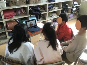 4年生で「オンラインブレンディッド授業」を行いました。グループごとにZoomでAET(外国語指導助手)の先生とつながり、一人ひとりが順番に会話を楽しむ授業です。会話は、これまで学習した英語のフレーズ「What do you want?」を使って、やり取りを行いました。