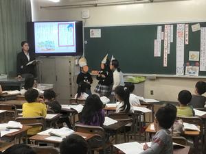 1月19日(水)、1年2組で国語科「おとうとねずみチロ」を教材とした研究授業を行いました。授業では、主人公・チロの気持ちの変化を思い浮かべながら音読することを目標に、子どもたちが物語の世界に入り込めるよう、さまざまな工夫が取り入れられていました。